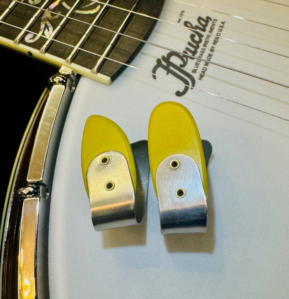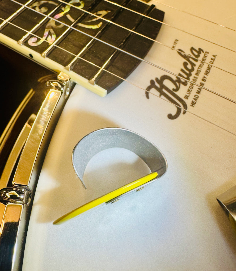 ToneSlabs and Prucha Instruments have come together to bring you the best sounding, best performing, and most comfortable thumbpick. Comes in two blade shapes and three sizes. "Crowe Claw" has a more pronounced point for clarity and precision and "Earl Stubbs" features a more rounded blade profile for a fatter tone.